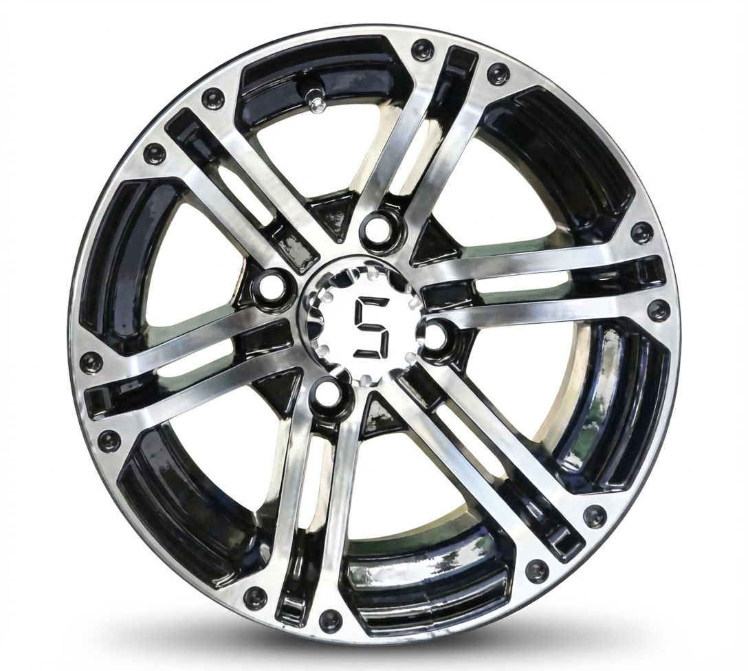 Upgrade your golf cart with this 10″ Machined Gloss Black Wheel. Combines a sleek gloss black finish with machined accents for a modern and durable upgrade.