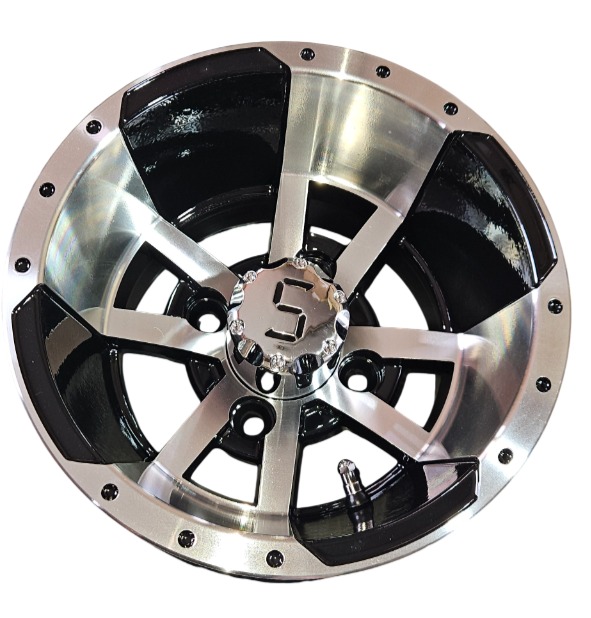 Upgrade your golf cart with this 10″ Machined Gloss Black Wheel. Combines a sleek gloss black finish with machined accents for a modern and durable upgrade.