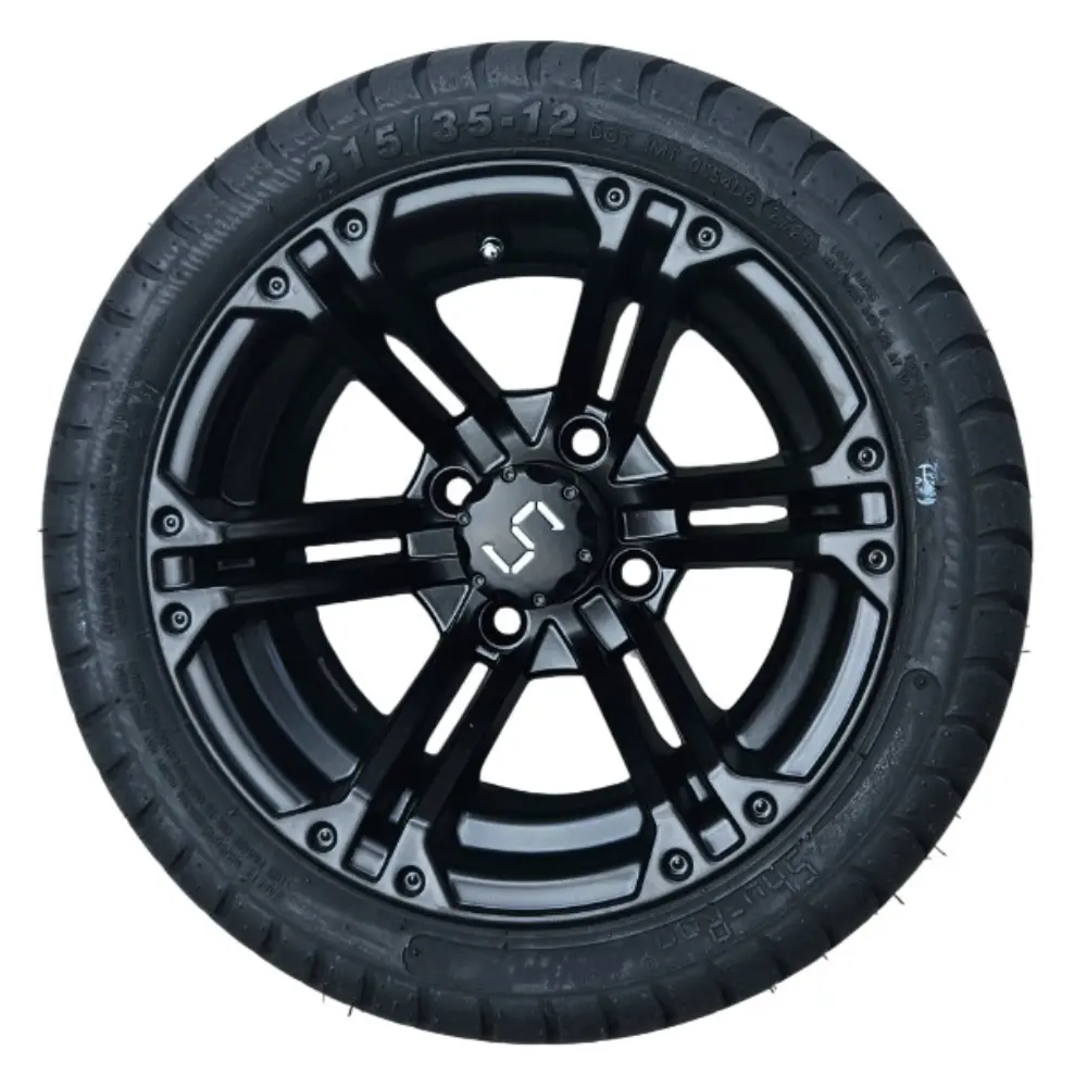 Upgrade your golf cart with this 215/35-12 Matte Black Tyre & Wheel Combo. Built for durability and smooth performance, it provides excellent traction while giving your cart a sleek, modern matte finish.