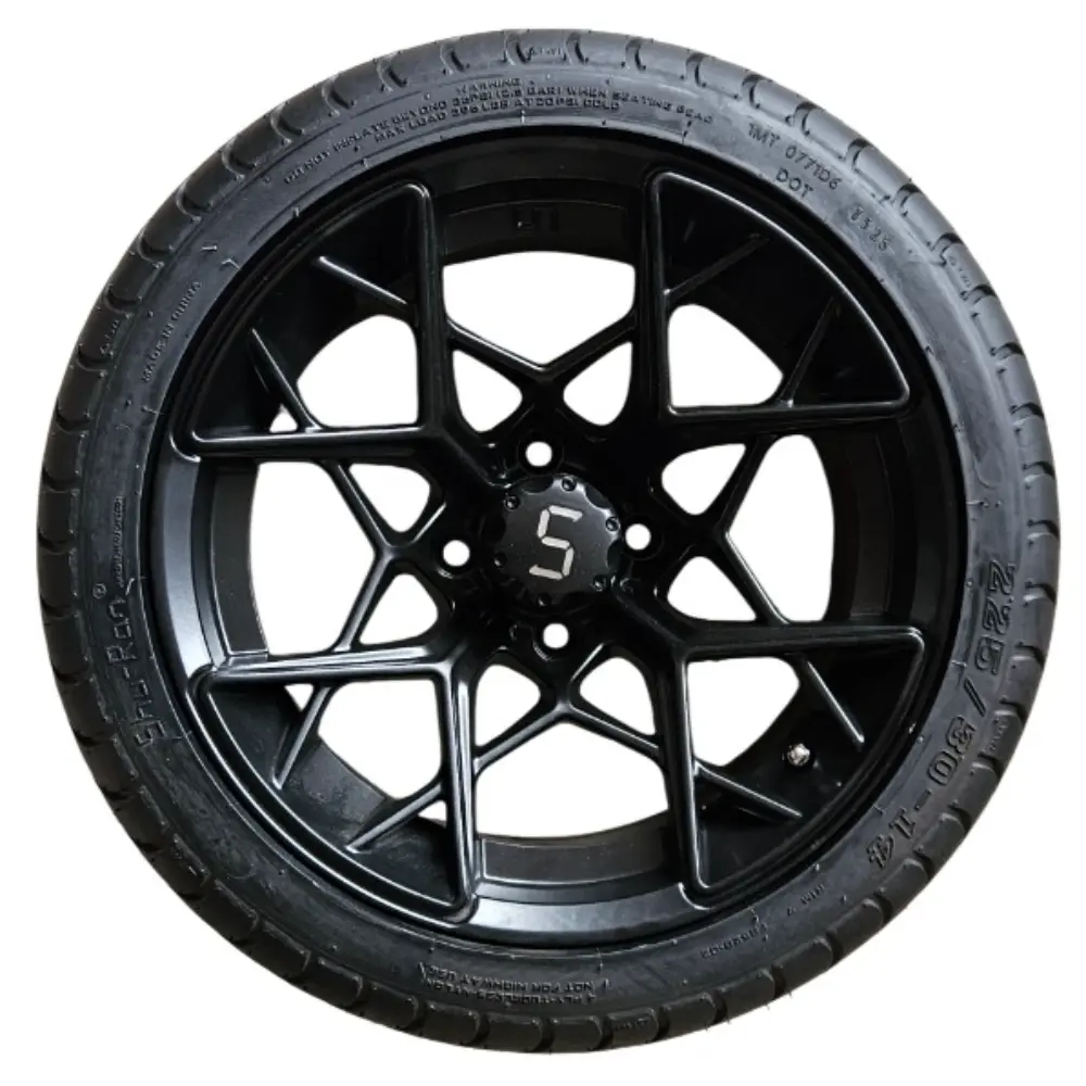 Upgrade your golf cart with this 14″ Matte Black Tire and Wheel Combo. Combines a sleek matte black wheel with a durable tire for improved performance and style.